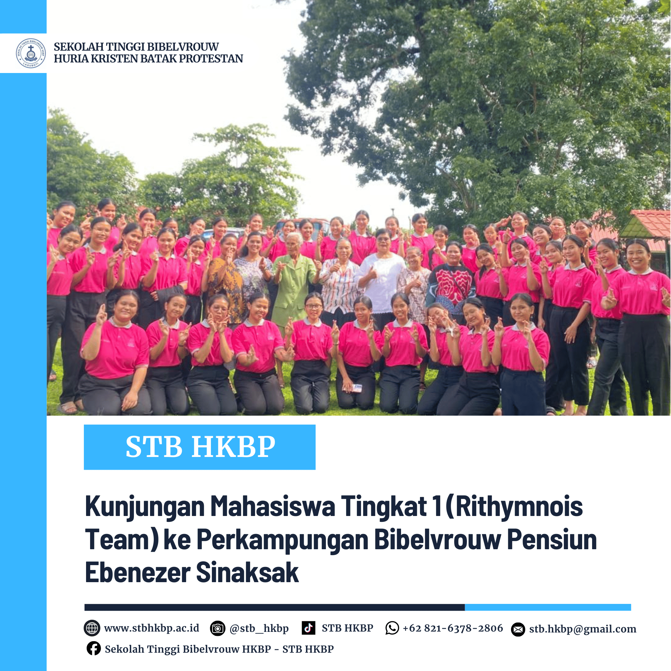 Sinaksak, 27 September 2025 – Mahasiswa tingkat I Rithymnois Team Sekolah Tinggi Bibelvrouw (STB) HKBP Laguboti mengadakan kunjungan istimewa ke Perkampungan Bibelvrouw Pensiun Ebenezer di Sinaksak pada Sabtu, 27 September 2025. Kegiatan penuh makna ini dipimpin langsung oleh Wakil Ketua III STB HKBP, Bvr. Ronauli Aritonang, M.Sn, serta didampingi oleh Ibu Asrama, Bvr. Ronauli Sitompul, yang dengan penuh perhatian membimbing para mahasiswa sepanjang kegiatan.