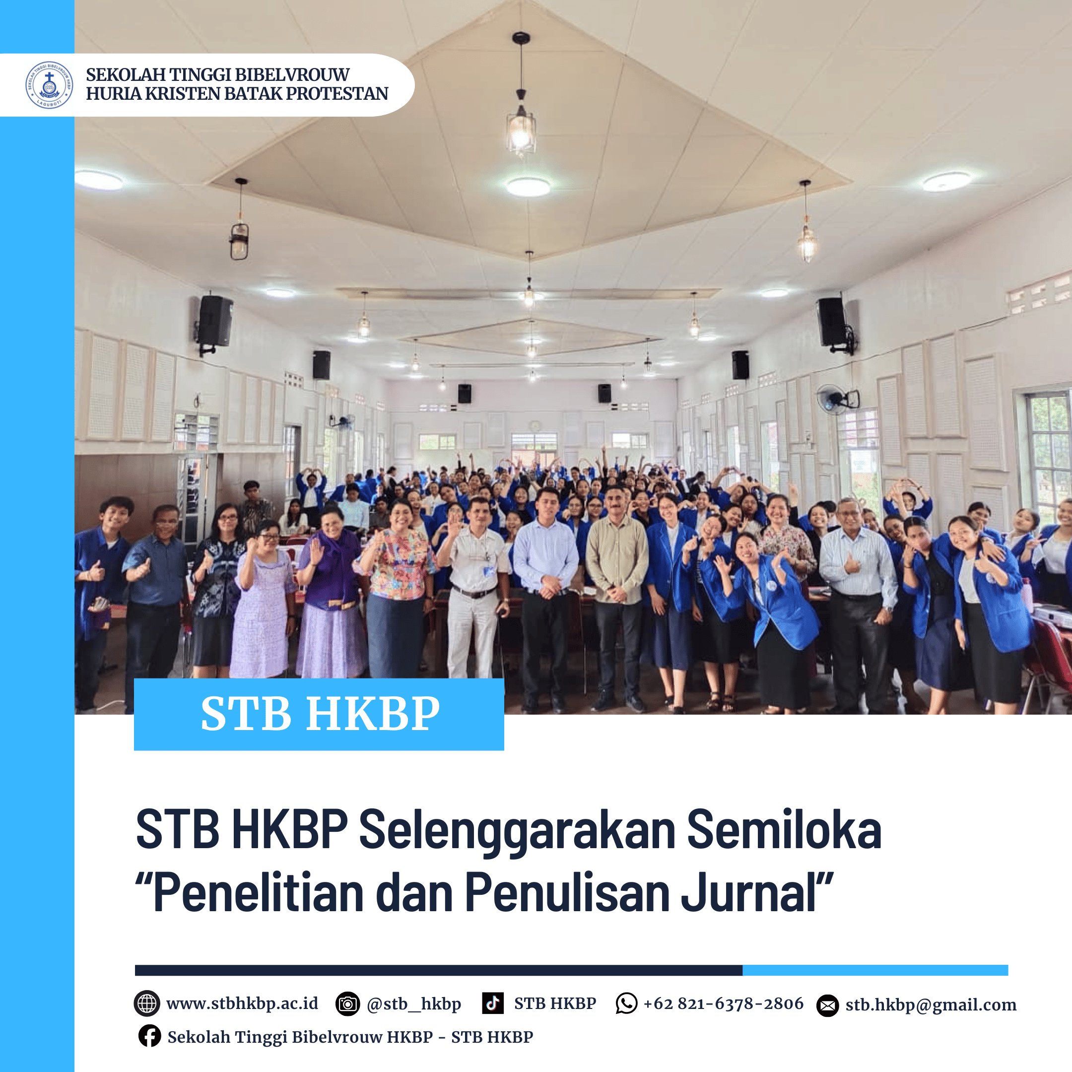 Semiloka “Penelitian dan Penulisan Jurnal” ini diikuti oleh seluruh mahasiswi STB HKBP, dosen, dan tenaga kependidikan, serta menjadi salah satu langkah nyata kampus dalam membangun budaya akademik yang berorientasi pada mutu, penelitian, dan pelayanan. Melalui kegiatan ini, STB HKBP terus menegaskan perannya sebagai lembaga pendidikan tinggi teologi misi yang berkomitmen membentuk bibelvrouw yang unggul, kritis, dan berintegritas dalam iman dan ilmu.